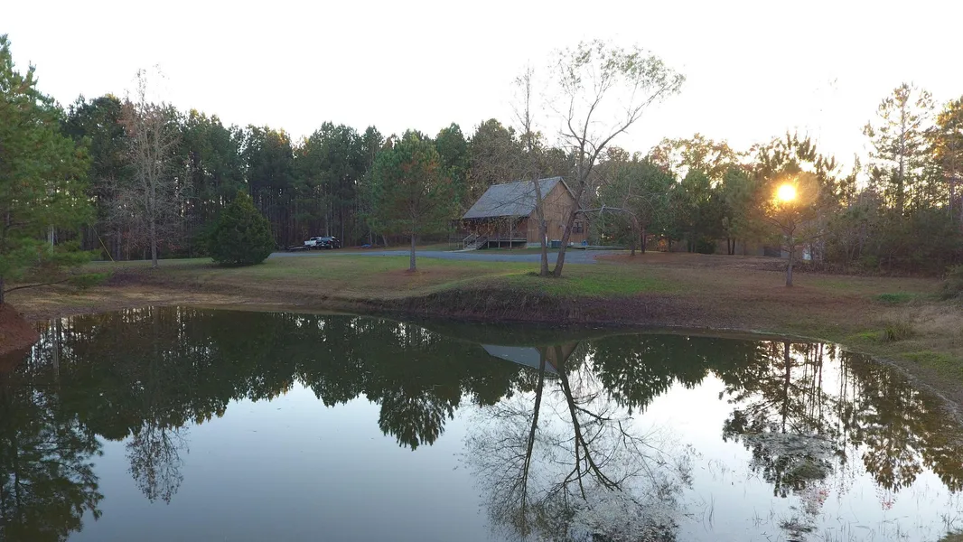 A completely turn-key property is what you will find as you pull in the gate and roll up to this relaxing cabin. The living space inside is open and flows from the living area into the kitchen. Two bedrooms are located downstairs and two bunk rooms upstairs with a bathroom on each floor. There is a beautiful wood interior with high ceilings and the centerpiece is the fireplace where the gas logs will set the mood of a cozy feel to unwind. Looking out into the back yard, you will see a firepit and large back porch, as well as the views out across the countryside. The land has been exceptionally designed and maintained to be an incredible hunting property. Seven food plots are strategically located from one end to the other. There are also 4 shooting houses that are set up and will stay with the property. The timbered acreage is very diverse, with mature hardwoods, mature pines, Young pine...