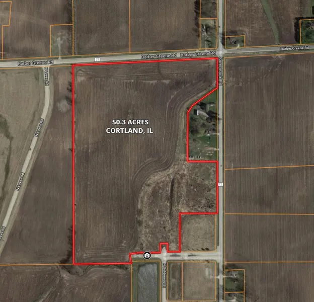 50 acres on the north-side of Cortland along Somonauk road and Barber Greene road. Excellent road frontage and exposure for the next wave of residential development. Originally part of a larger development project. There is a regional airport near the site and Northern Illinois University is on the west side of DeKalb. Good farmland with utilities at the site for future development.