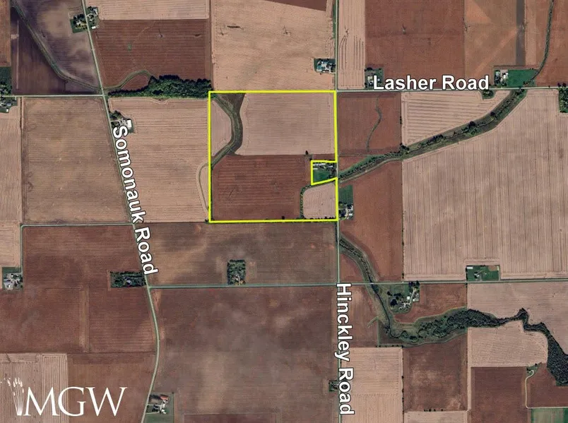 Location: The subject farm is located approximately 40 miles southwest of Chicago O'Hare International Airport. Nearby cities include: Hinckley (7/8 mile south), DeKalb (7 miles northwest), and Sugar Grove (7 3/8 miles east).