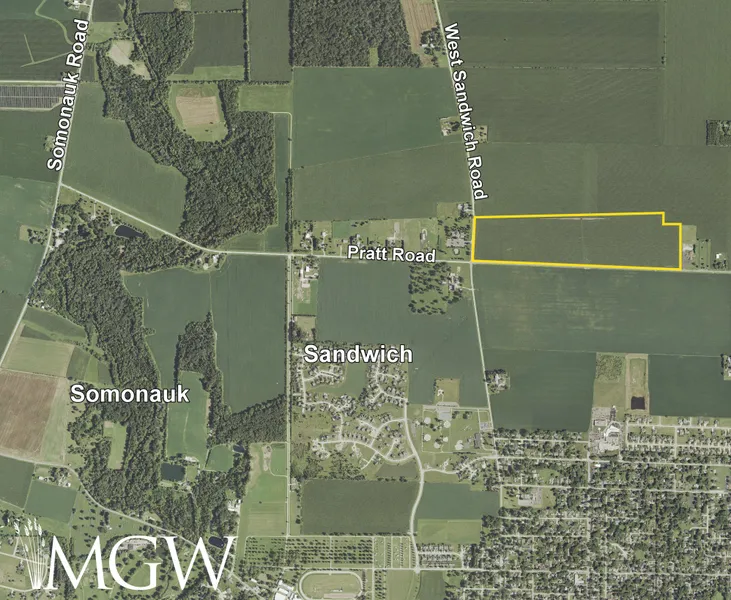 Location: The subject farm is located approximately 42 miles southwest of Chicago O'Hare International Airport. Nearby cities include: Sandwich (1/4 mile south), Somonauk (1 1/4 miles southwest), and Plano (3 miles east).