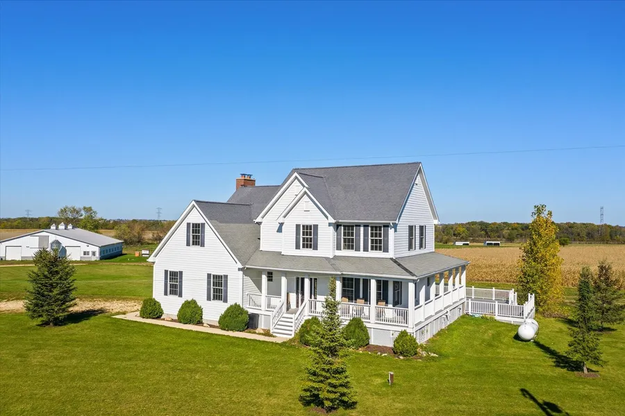 Past 42+ acre Standardbred training facility with serene and breathtaking views of land including a 1/2 mile certified track. Currently being used for 40 acres of tillable land. Potential income producing stall rentals. The heated barn includes 22 stalls, a full bath, an office, tack and utility rooms, horse showers, and paddocks. The custom built house features a wrap around porch and low maintenance fiber cement board siding. The interior greets you with an expansive 2-story foyer complete with hardwood floors throughout and a gorgeous family room with natural stone gas/wood burning fireplace and french doors leading to an enclosed gazebo for plenty of relaxing space to enjoy the views of the land. The gourmet kitchen is highlighted with custom 42" cabinets, granite counters, SS appliances, and 2 dishwashers. The upstairs contains a fabulous primary bedroom with fireplace, sitting room and en-suite bathroom with whirlpool tub and separate shower. The basement has an extra deep pour foundation with 10 ft ceilings and rough in for fireplace and bathroom.