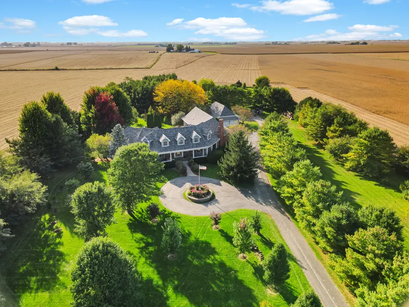 Embrace the charm of countryside living on 5 acres of pure tranquility. This sprawling 5,000 sqft Estate invites you to experience the beauty of rural life! This architectural build provides ample sunlight with stunning sunset views throughout the entire backside of the property. The extensive brick paver patio surrounds the salt water Gunite pool, hot tub, gazebo and outside seating areas -making this a summer's oasis! Inside you will be delighted to find a gourmet kitchen with chef's pantry, and an attached breakfast nook overlooking the private wooded yard and fruit trees. The granite countertops, deep copper penny-nail sink, and high end appliances will be sure to impress any guest this holiday season. Relax in the four seasons room, or study in the nearby office featuring custom Knotty Pine built-ins and a wood burning fireplace. Host game night in the enhanced and generous family and living room combo; which includes a massive stone fireplace, wood columns and built-in shelving. Pass through the two story sun filled hallway into the private first floor primary suite, encompassing a fireplace and patio entrance, separate tub and shower, water closet, and large walk in closet -featuring a bonus laundry hook up. The separate laundry room includes a Samsung washer and dryer with upgraded Ozone Eco Pure technology. Additional full and half bathroom, complete the first floor. Upstairs you will find 3 additional bedrooms and 2 full bathrooms. The partially finished 1,000 sqft basement is ready for your ideas! Windows throughout home were replaced in 2019. The roof, vinyl siding, Hardie board trim, gutters, and garage doors all NEW in 2019. All 4 house furnaces replaced in 2019, with additional garage furnace replaced in 2017. The heated 4 car garage is equipped with 4 garage doors, giving ultimate accessibility for outdoor hobbies. Elaborate water and air filtration system installed and maintained. This land is primed for homesteading activities and independent living!