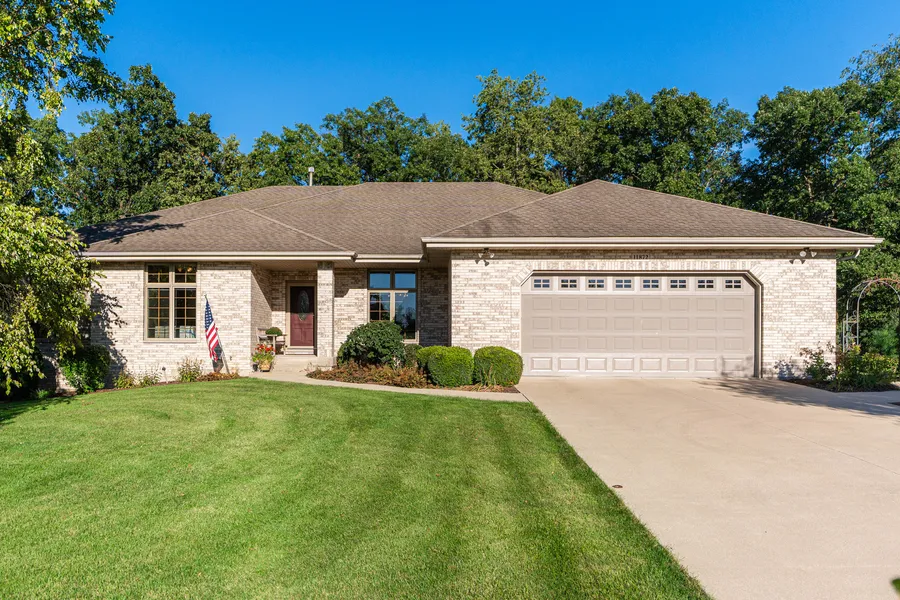 Exquisite Ellwood Woods residence located on a quiet cul de sac. This lovely custom built ranch home boasts over 3,650 square feet of finished living space. The main floor features a spacious entry foyer leading to the beautiful vaulted living room, with gas fireplace and a wall of windows, including transoms, overlooking the wooded lot line. The formal dining room includes built in cherry cabinetry and a tray ceiling. The large eat-in kitchen features an abundance of windows, an island, recently refinished hickory cabinets, and a patio door leading to the wonderful and private 20' x 16' screened porch where you may begin your day with a cup of coffee, or wind down in the evening with a glass of wine. The first floor master suite includes a spacious bedroom with a tray ceiling, an extra large walk-in closet (enough space to set up your ironing board, too) and a private bathroom featuring a large glass block walk-in shower, extra large vanity with lots of storage and double sinks. Two additional bedrooms and a laundry room finish the first floor. Walking down to the lower level, you will discover a large open area with an abundance of large windows, a wet bar/kitchen area with a sink, refrigerator and a sliding glass door leading to a brick patio overlooking professionally landscaped gardens and landscaping. An office/4th bedroom, full bathroom and storage finish this floor. The lower level features radiant floor heating. The 3-car attached garage (892' sq ft) includes a side overhead door. Numerous upgrades and features include 9' ceilings on the main floor, Pella windows, custom millwork, transom windows, solid oak 6-panel doors, vaulted ceilings, central vacuum, large walk-in master shower, screened porch, brick patio, full finished walk-out lower level with wet bar, & office/4th bedroom, lower level heated by radiant floor heat. 2022 water heater, sump pump, water softener, refinished kitchen cabinets; 2019 AC & furnace. Sewer is Ellwood Greens Association billed quarterly. NO SHOWINGS UNTIL SATURDAY, OCTOBER 26, 2024. NO EXCEPTIONS.