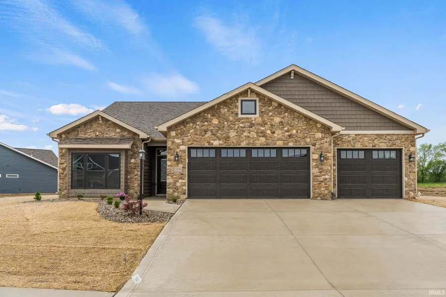 *OPEN HOUSE, FRIDAY MAY 17TH, 4-6 PM & SUNDA, MAY 19TH 2-4 PM* Welcome to the Chardonnay Villa by Kiracofe Homes. Located within Bridgewater Golf Community by Fairway #12. This 1,945 SF Ranch Is a 3 Bed-2 Bath, Split Bedroom is an Open Concept. A Craftsman Style Front w/ Natural Stone and Shake Accents. This beauty offers A Large Great Room/ Two Sided Fireplace that backs up to a 13 x 12 Sun room filled with Windows. The Kitchen w/ Island includes a 7' Island w/ Breakfast Bar, Custom-cabinets w/ under & over lighting, Quartz Countertops, Tile Backsplash, Generous Counter Space and Stainless Appliances! Off the Kitchen is a 11 x 11 Dining room. The Master Suite is 16 x 12 and includes a Tile Shower, His & Hers Vanities and a Custom Walk In Closet By Closet Concepts. 2 Additional 11x11 Bedrooms with large closets are across from the Great Room. Don't overlook the lovely 12x12 Covered Patio Perfect For Entertaining.This Home Includes a whole yard irrigation, seed and straw grass in back and front landscaping. Drain in garage floor and cut curb. Reverse osmosis in kitchen sink. LOW Monthly Dues and A Community Clubhouse, Pool, Tennis/Pickle ball and Golf.