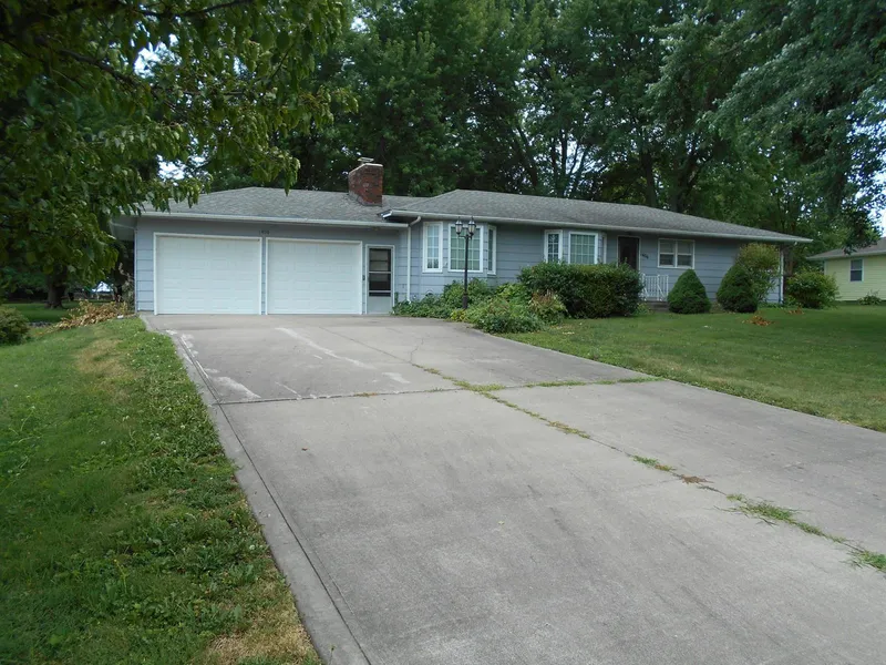 Family owned home for over 50 years for sale in Cameron, MO. Formal living, family room with fireplace with insert, built in bookcase and office workspace. Hall bath with vanity & shower. Kitchen with Red Cherry cabinets, dishwasher, oven & range. Vinyl thermo pane windows. Hardwood floors under carpet. Central Air. 1650 sq ft home with 3 car attached garage. Full basement with new sump pump, new hot water heater, bath & laundry hook ups. Transferable foundation warranty! Deck,large shaded lot (2/3 acre). Solidly constructed, in need of only your ideas, remodel and cosmetic up-dating.