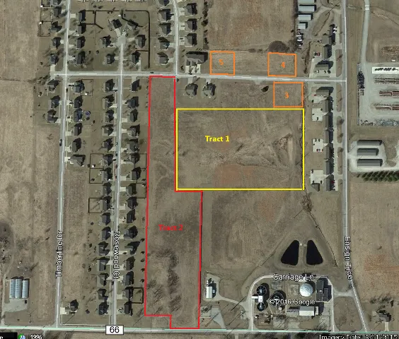 Tract 1: 15 Platted lots for R-3 multifamily dev. Storm sewers have been installed. Tract 2: 23 platted lots zoned for residential, single family or duplexes. Lots A, B & C are build ready (streets, sewer & utilities). Online bidding only.