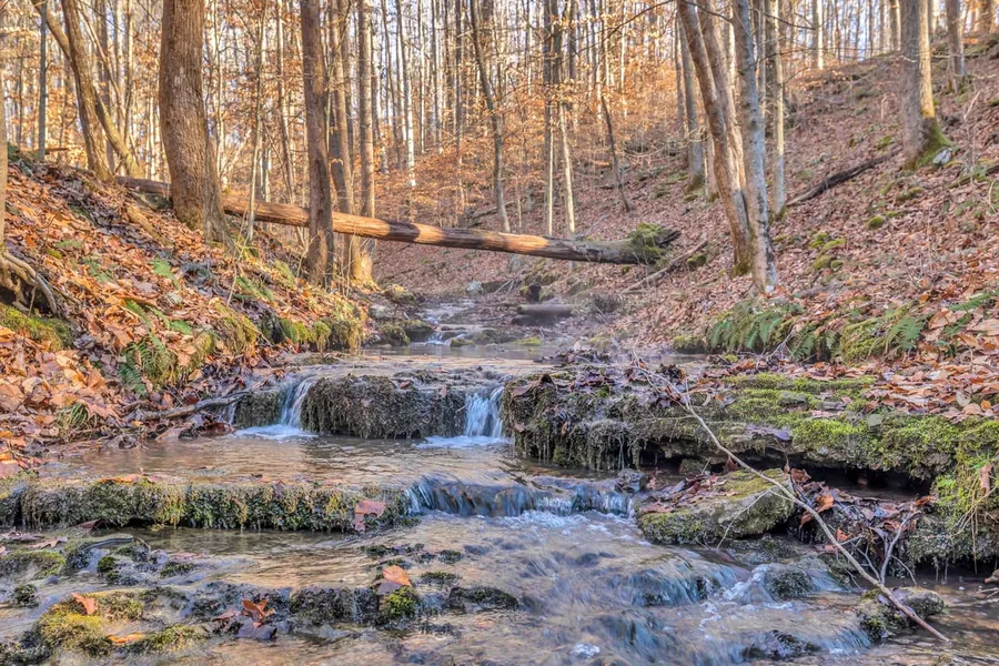 Perched atop the ridge, a cleared area awaits, offering an inviting spot for a cabin retreat, where one can soak in the breathtaking views of the surrounding natural beauty. A tranquil creek meanders through the hollow, adding to the allure of this picturesque setting.