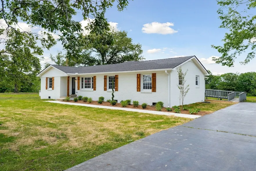 Completely remodeled from top to bottom, this stunning brick ranch sits on 2 acres and blends modern luxury with timeless quality. The exterior features freshly painted brick, cedar shutters, a new roof, and fresh landscaping. Inside, no detail was overlooked custom oak cabinetry, a huge island, soft-close drawers, pot filler, custom vent hood, and all new kitchen appliances make the kitchen both beautiful and functional. The dining room has a coffered ceiling, and the home is filled with custom built-ins and shelving. The private primary suite is a showstopper with a massive walk-in closet, soaking tub, custom vanities, and a fully tiled shower with rain head, handheld, and standard shower head. Additional highlights include 7-inch white oak engineered hardwood flooring, a home office with built-ins and floating shelves, and a large pantry/laundry room with tile flooring. Enjoy sunset views over the backyard and peaceful surroundings, just minutes from Four Seasons Marina and the Smithville city limits. This is single-level living at its finest completely rebuilt with high-end finishes and thoughtful design throughout.