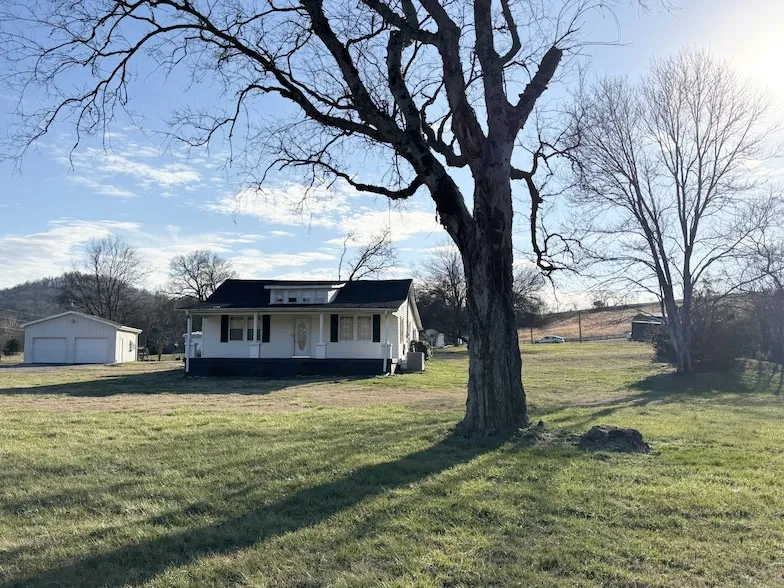 All the country vibes you could ask for! This 2-bedroom, 1-bath home with fresh paint and updated flooring is tucked away and features a covered front porch overlooking a beautiful 1.68-acre level lot a perfect garden spot and ideal for a mini-farm or enjoying wide-open space. A small creek borders the property, adding to the peaceful setting. Property also includes an insulated 24x24 metal 2-car garage/shop with a loft and electricity, ideal for a workshop, storage, or hobbies. Located conveniently to Hwy 70 and I-40, offering easy access while still enjoying a quiet, rural setting.