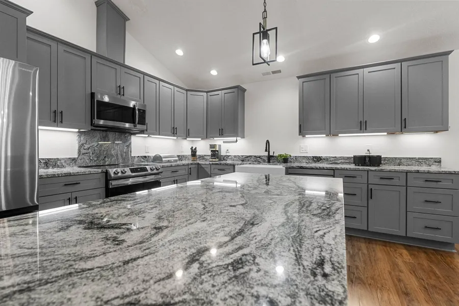 This 2024 custom-built home is located in Hiouchi, a sunny pocket of Del Norte County known for its warmer weather and towering redwoods. Set on a full one-acre lot, the property offers a tranquil, park-like setting with mature redwoods and ferns, while still allowing an abundance of natural light throughout the home—a rare combination for new construction in this area. The home features 1,856 sq ft with 3 bedrooms, 2 bathrooms, and an attached 528 sq ft two-car garage. Vaulted ceilings highlight the open living, kitchen, and dining areas, which flow seamlessly together. A brand-new pellet stove adds warmth and charm to the main living space. The enlarged, well-appointed kitchen is a standout, offering abundant cabinetry, expansive granite countertops, a large center island, and stainless steel appliances—ideal for both everyday living and entertaining. The dining area opens directly to...