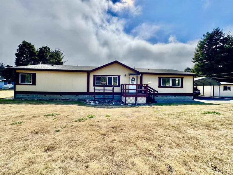 Nestled at the end of a quiet lane, this charming 3-bedroom, 2½-bath manufactured home BUILT IN 1999, offers serene country living just minutes from the coast, town, and schools. Inside, two spacious living areas invite both relaxation and lively gatherings, while the generous primary suite features newly laid carpeting, as do the additional two bedrooms and living areas, creating a soft, clean-flowing floor plan throughout. Detached shop built in 2013 - 828 sq ft & shop - 440 sq. ft. A well-appointed laundry room, complete with washer, dryer, and ample cabinetry, ensures everyday convenience. In addition, you’ll find a large attached garage, a detached workshop, and a covered carport—perfect for hobbies, storage, or parking. With abundant storage space and one full acre of usable land, there’s plenty of room to roam or to create. Plus, with ADU potential, this property offers flexibility for rental income or multigenerational use. Privacy, expandability, and coastal proximity converge in this peaceful retreat—don’t miss your chance to call it home. Schedule your private tour today!