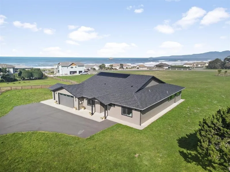Move-in ready, thoughtfully built single-story floorplan with Ocean Views and Private beach access. The kitchen is a true showpiece. Custom maple cabinetry, including soft-closure and pull-out drawers. Large farmhouse sink, walk-in pantry, and stainless-steel appliances. Enjoy the year-round outdoor living room on the enclosed and heated patio with Pacific Ocean views. The sliding glass doors and large windows were designed to appreciate the panoramic views and create a sense of openness, blurring the line between indoor and outdoor spaces. Perfect for cooking and entertaining while enjoying the beautiful views. Efficiency and cost effectiveness are built right in with the owned solar system and the tankless water heater. Two-car attached garage with a separate but attached additional garage for motorcycles, or a riding lawn mower (included). You will not be disappointed! SEE FOR YOURSELF: