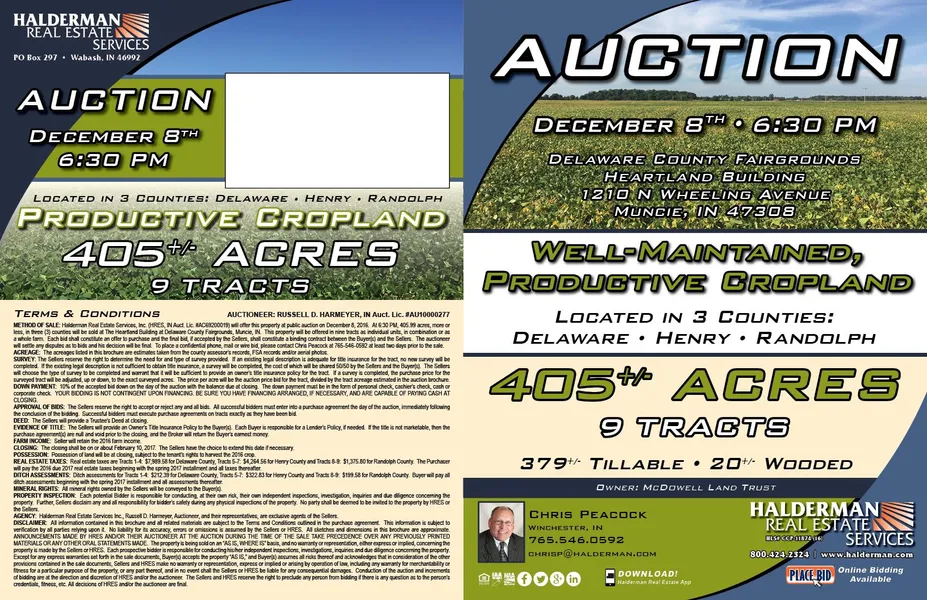 General Location: Tracts 1-4: in NE Delaware Co, to the SE side of Royerton, near Muncie, IN; Tracts 5-7: approx 1 mile W of Mooreland, IN; Tracts 8 & 9: approx 1 mile S of Modoc, IN