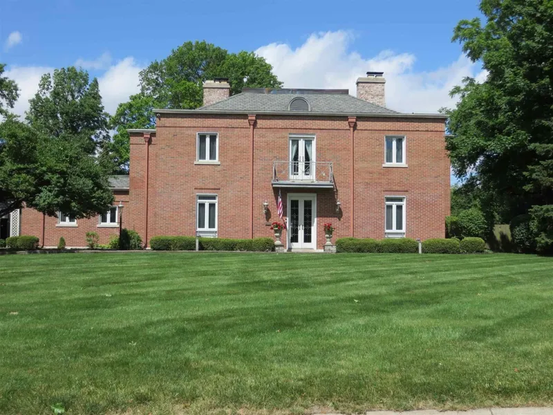 Modern Georgian architectural design at 1246 N. Warwick Road is attractively displayed on extra large lot in historic Westwood neighborhood close to Ball State University & IU-Ball Memorial Hospital campuses. Enter the home through sparkling leaded glass doors into stunning foyer featuring spectacular open staircase spiraling from second floor with decorative brass railing encircling gorgeous hanging crystal chandelier. The eye scans the beautiful formal dining room with crystal chandelier & fireplace to the left of foyer, before looking forward through another set of original glass doors, through the spacious living room with gaze resting at the sun room overlooking private backyard & salt water pool. The curved wall of windows in the oversize sun room provides maximum natural light and affords view of pool, stylish pool house, gardens, play area & terrific custom tree house. There are 3 sets of glass French doors between the sun room and the living room presenting lovely fireplace and hand painted wallpaper accent wall. Adjacent to the sun room is very large room of flexible space with closets used by previous owners as bedroom & full bath across the hall. The kitchen with breakfast bar, pantry, tons of storage, desk, buffet/work counter, small butler pantry, wine chiller, solid surface counter tops, gas range, and all appliances is nestled between the sun room & dining room. Other main floor features include handsome wood paneled office with built in bookcases, powder room with anteroom for last minute hair & lipstick check, the laundry room......... Upstairs is a circular landing around the staircase with a bench at the doors to the front faux balcony. There are 4 bedrooms, each with its own bathroom. Between one bedroom & its bath is a dressing room with 2 walls of mirror door closets & a makeup table. Door from the master bedroom opens to sun room roof & view of the backyard. Basement level has large rec room with gas fireplace, a lovely 4 piece bath across from room sometimes used for quiet rest or guest, a canning closet and the mechanical room. Two super high efficiency gas powered boilers provide zoned heat & 2 AC units are also zoned. There is an on demand water heater, sump pump with water pressure driven backup and Oxley rented softener. Of additional interest: ADT close circuit TV, cameras & DVR; invisible fence & 2 collars; Fiber optic high speed internet; New pool pumps, saltwater system, filter,electric pool cover & robot cleaner +