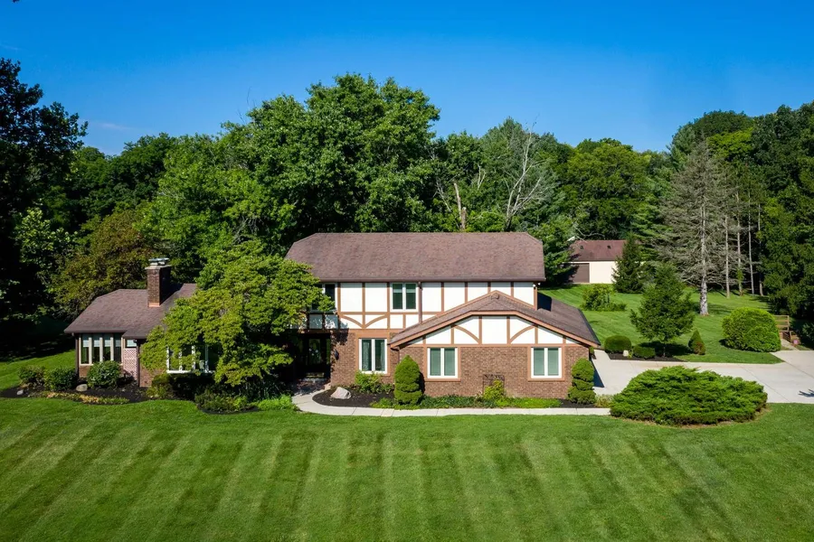 Daleville Schools ~ convenient to SR 32 & 67 and I69! Large wooded acreage w/ river frontage! Live within your own beautiful personal park! Privacy, wildlife, and extensive frontage on the White River make this a one-of-a-kind setting! Gorgeous Tudor style home is in wonderful condition inside and out. Upon entry into the lovely front foyer, you'll immediately feel the charm found in this home. Oversized Living Rm offers cathedral ceiling, gas log fplc., & loads of windows w/views of the property. Off the Living Rm is a gorgeous Sun Rm w/vaulted wood ceiling, ceramic floor, & windows on three sides overlooking views of the picturesque stream. Formal Dining Rm overlooks the expansive front yard and is off the foyer. The bright kitchen features ample cabinet space, island w/butcherblock top, pantry closet, quartz countertops, work desk, & hardwood floors. Spacious adjoining informal dining space overlooks the back yard. The laundry rm., w/half bath adjacent, is conveniently located off the back hall. Upstairs the private Master suite offers a large custom walk-in closet and the recently updated bath features a beautiful custom tile and granite luxury rain shower. The other two bedrooms are spacious and offer ample closet space; the 5-pc hall bath has a dbl. vanity & a cozy Jacuzzi tub. In the basement level the oversized Family Rm features a woodburning fplc., a nice-sized play/hobby room, & good mechanical area & storage space. The large 2.5-car plus garage has loads of storage, shelves, workbench, vanity cabinet w/sink, and a well-equipped workshop area on one side. Outside you won't believe the 80 x 48 mega outbuilding! This building features concrete floor, skylights, 2 overhead doors (1 automatic, 1 manual), utility sink, toilet, 220-amp elec. service & air compressor hookup. Grounds consist of two parcels (in total 35.75 acres) featuring heavily wooded acreage w/extensive frontage on the White River perfect for fishing or kayaking, as well as a lovely stream running along the south side of the property. This is the perfect nature lover's paradise w/trails throughout the woods great for walking or riding your ATV. You must take a walk thru the property to appreciate its beauty! Exterior of home is well maintained; per seller the two Trane HP/CA units are approx. 3 yrs. old; windows & doors have been replaced thruout most of home. Sq ft stated incl. measured finished living area in bsmt but not the Sun Rm. Buyer should rely upon own measurements.