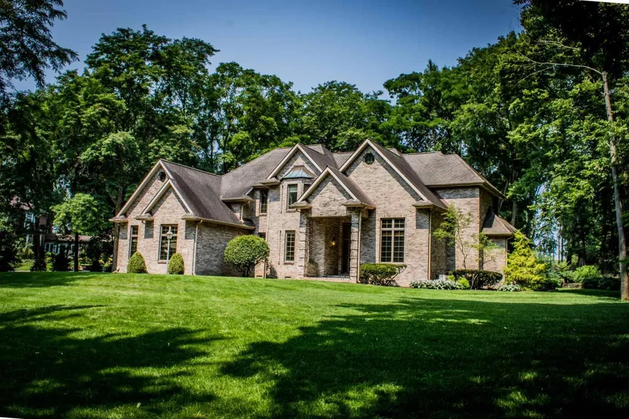 Beautiful home on private partly wooded lot, with over an acre, and heated in-ground pool! New Cali bamboo flooring and fresh paint in much of the home. Foyer entry leads to great room with soaring ceilings, fireplace, built-ins, nearby butler's pantry, and dining room with double trayed ceilings. Home office features glass French doors, wainscoting, and custom triple tray octagonal ceiling. Spacious eat-in kitchen with beautiful chef's quality appliances, breakfast bar and desk area. Main level primary suite with walk in closet, garden tub, step in shower. 3 additional bedrooms and 2 baths off balcony above the great room are accessible via front or back stairs. Theater room in basement includes 10 leather reclining seats, surround sound, coffered ceiling with custom paint. Other perks include new motor for automatic pool cover, new liner and filter in pool, invisible fence around entir...