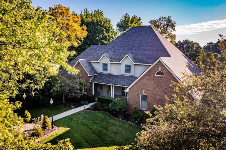 Outstanding country home, custom designed and built by current owners, is IMPRESSIVE from every angle of location, floor plan design, landscaping and thoughtful personal touches. Guests may arrive via paved drive to front door entering to face a 2 story foyer with beautiful open staircase, landing, & a bridge overlooking both foyer and spacious family gathering room beyond. (Landing also has separate stairs directed to kitchen.) Upon entry there is living room to left & formal dining to right. Through the dining room is ginormous kitchen with cooktop island, more than abundant cabinetry, pantry, updated appliances and architecturally pleasing informal dining area. Main floor laundry between 2 car garage & kitchen. Main floor has oversized bedroom, WIC & en-suite bath. 3 Upstairs bedrooms each have a personal bathroom: 1 en-suite, 2 Jack&Jill. Convenient attic storage access. Finished walkout basement provides attractive rec/family room (pool table conveys), huge workshop with tons of cabinetry, as well as storage areas. Delightful outdoor living spaces are accessible from main floor & basement, and include lovely white (screened) gazebo! Family planted dozens of trees and perennial plantings over the tenure of their ownership. The 5 acre property is frequented by deer & other wildlife. Bonuses include brand new furnace and brand new garage door. Basement French door replacement is scheduled.