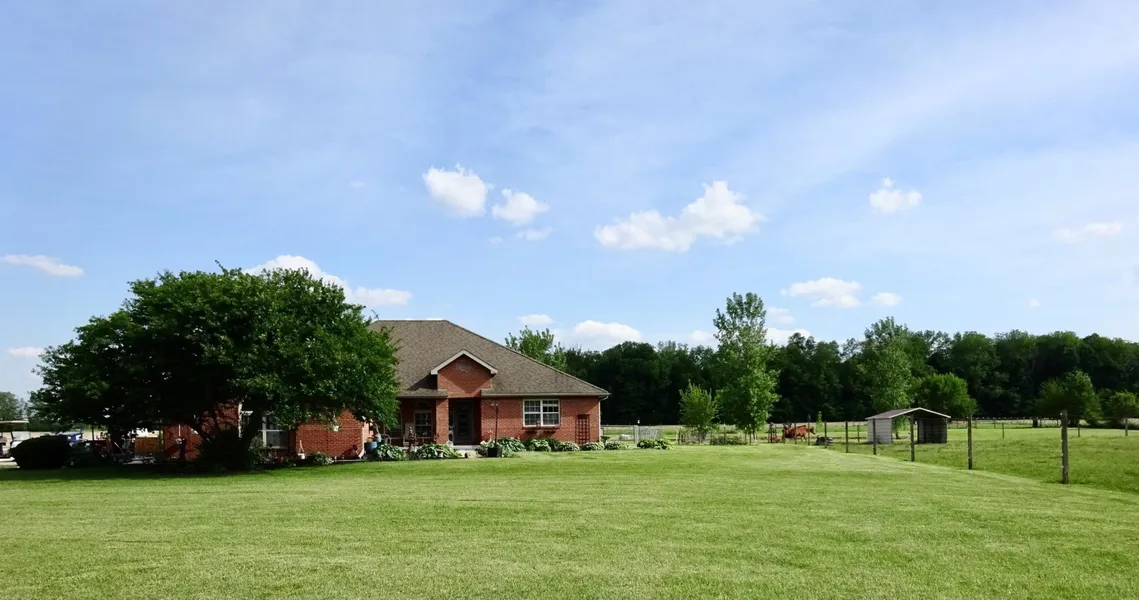 Want to own your own piece of Paradise? Look no further than this gorgeous 4 Bedroom, 2 Bathroom ranch home located in Yorktown on 5 idyllic acres with a Pole Barn, horse stalls, and a pond! The main living space of this 2496 sq. ft. country home features an open floor plan with an extra large living room, great room, formal dining room, and a beautiful, updated kitchen with granite countertops and custom cabinetry with tons of room for storage. There is an extra room to the right of the entry that is currently used as a sewing room but could be a formal living room, office, or potentially a 5th bedroom. There is an EnSuite bedroom off of the great room as well with multiple closets, and an updated bath and vanities. The doorways in the Ensuite bedroom are all extra large and would be ADA compliant. If you go down the hallway to the left of the Great Room you will find the laundry room, an updated full bath and 3 additional bedrooms. The home has tons of closets and plenty of room for storage in the oversized 3 car garage. There is an enclosed Three Seasons Room off the back of the house which leads to a large fenced in yard with an Above Ground Pool (Sellers will take down if Buyers do not wish to keep the pool). Outside you will find the large 1800 Sq. Ft. Pole Barn (built in 2014) with 3 horse stalls, 2 freezers for storing feed, and a 15ftx60 Ft. covered area for sitting and relaxing, and a deck area off of the pond. There are two large pasture areas as well for horses or other animals and a chicken coop. Additional improvements include: New carpet 2018, New hardwood floors 2014, Kitchen Updated 2014, Master Bath Updated 2020, New vinyl flooring in sewing room ,New Furnace/AC/Heat Pump 2020. Furnace is primarily a heat pump but there is a propane tank that is buried that is used as a back up. Furnace also has a UV feature which acts to kill germs in the air. Water Heater 2014. The shelving in the garage is not included in the sale.