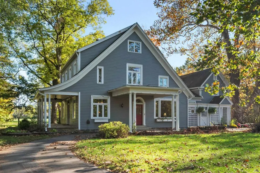 Now is your opportunity to purchase the Burlingwood Estate originally built in 1875 by one of the first settlers in the area: the Ganter family. In 1926 the home expanded and was converted into a country estate. This historic farmhouse has been meticulously renovated blending original features with modern amenities. Today, the 6.21 acre parklike setting offers all the conveniences of an accessible location to downtown Muncie, while providing a scenic retreat on the drive to Prairie Creek Reservoir. The spacious, well-appointed home offers unmatched elegance with nine and a half-foot ceilings, crown molding, refinished hardwood floors throughout, five sets of interior 12-pane French doors, and multiple original crystal chandeliers. Double-pane, insulating windows are featured throughout the house. A true chef's kitchen was remodeled in 2020. Featuring an abundance of new cabinetry while also preserving an area for the beautiful original solid-wood cabinets with glass doors, marble countertops, classic solid-wood butcher block island, Williams and Sonoma marble-top kitchen island and a separate coffee-bar area with an additional sink. The kitchen is complete with the GE Caf Appliance Suite: gas range with dual ovens, double-door refrigerator with freezer drawer, built-in microwave, and dishwasher. The home itself has an impressive layout with 5 bedrooms, 3 and a half bathrooms, and large gathering spaces in the living and dining rooms. The main floor is spacious and bright with plethora of windows throughout creating beautiful views from each room. The staircase off the kitchen leads to the second story mother-in-law suite with two bedrooms and a full bathroom. The main staircase off the foyer leads to the remaining 3 bedrooms including the remodeled primary suite and third full bathroom. The third floor attic is an added gem with loads of space for another bedroom, game room, or study. The large separate garage has two double-depth bays. A staircase leads to a larger upper room, partially finished, and another room that is ideal for storage. Then there is a 40x20ft workshop building, behind the garage, which has both heating and cooling, a smooth concrete floor, several work tables, abundant lighting, and 120 and 240 power available for power tools. Lastly, but certainly not least the home has an established and successful airbnb apartment bringing in $15,000 annually for the past three years.