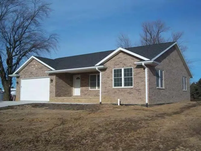 3 BR, 1 BA newly constructed brick ranch house. Insulated shop with multiple outbuildings and multiple grain bins.