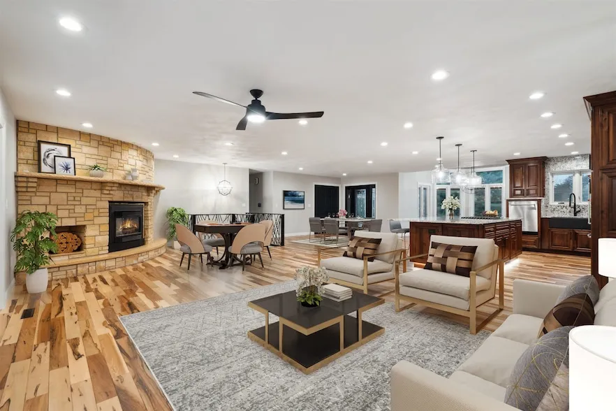 Exceptional All-Brick Ranch on 3 Acres with Expansive Living Space and Solar Power!! Welcome to this beautifully designed, all-brick ranch home perfectly situated on 3 acres at the edge of Delhi. Offering over 5,000 square feet of finished living space, this 5+ bedroom, 4-bath residence combines thoughtful design, comfort, and energy efficiency, featuring a solar power system that helps reduce electricity costs. Step into a spacious foyer that opens to a stunning, open-concept main living area adorned with Brazilian pecan hardwood floors. The inviting living room includes a cozy fireplace and glass doors that lead to a large backyard and concrete patio, ideal for outdoor enjoyment. The updated kitchen is both stylish and functional, equipped with newer appliances, a center island, and ample cabinetry, plus an adjacent dining area. Just off the kitchen, a convenient laundry room with a 3 ...