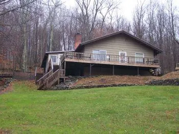Immaculate 2 BR/1 Bath chalet w/ open floor plan, hardwood floors, great room w/fireplace plus a great 4-season 12’X14’sunroom all nicely situated on 2.5 acres. You’ll love the wrap-around deck, large outside patio area with quaint footbridge over the seasonal stream, extensive landscaping, and elaborate stone steps and rock gardens. Need more space-it also has a great attached 17’x36’garage w/ shop area and overhead storage. RR Pool and Tennis Club Membership available also.- "MUST be seen to be appreciated."