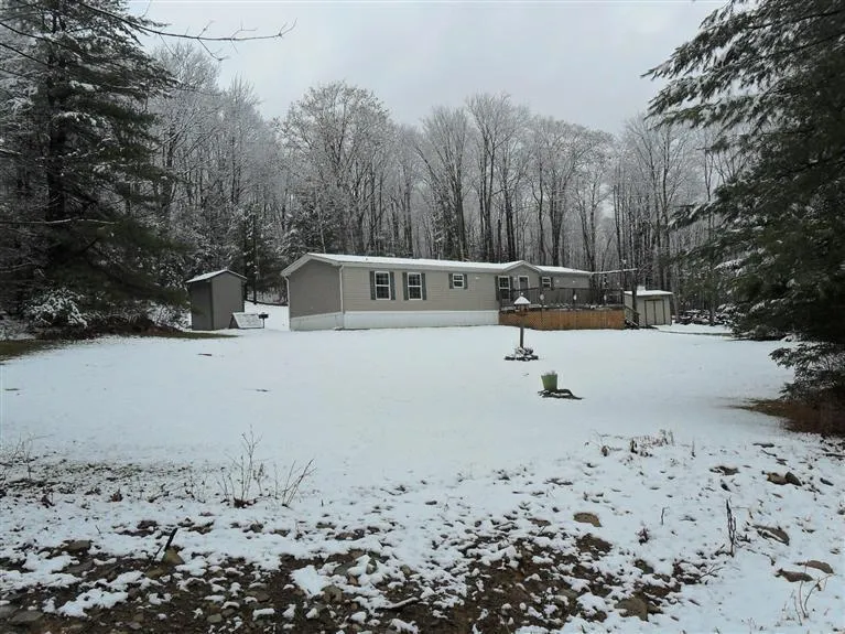 Privacy abounds at this 2003 Redman Home with an Upgraded Arctic package - Snow and Ice shield, full 2 x 6 construction for max. insulation value. Spacious living in open floor plan Living room, dinning area and Kitchen. Two bedrooms and full bath at one side of living area and separate Master bedroom suit - Sliding glass door out to back deck and 10 x 30' deck across the front. Three out buildings 12 x 24, 10 x 10 & 12 x 18 with dog kennel & heat, all have electric. Two tax parcels make up this great home with trails for hunting, snowmobiling, hiking etc.