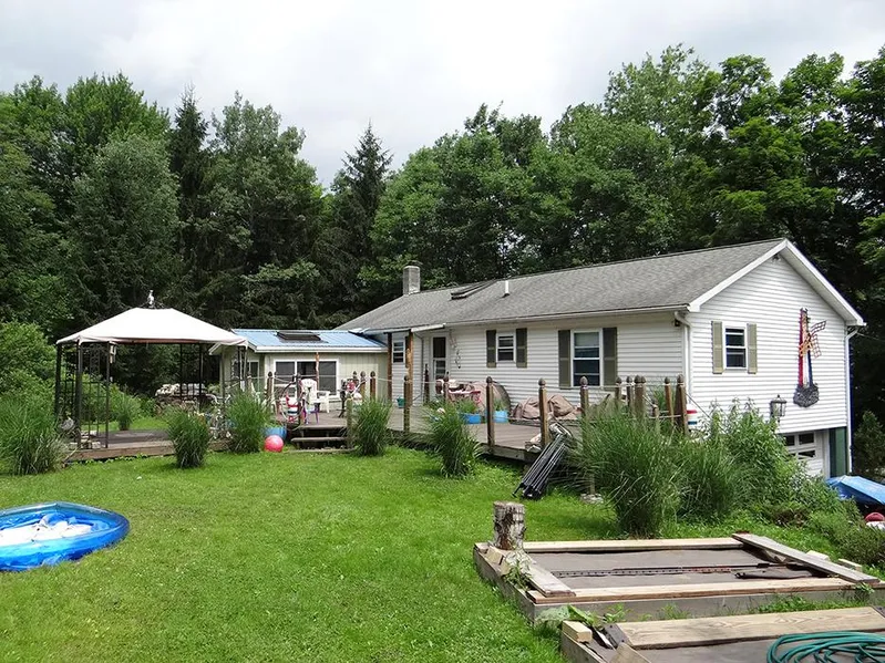CATSKILL MOUNTAIN RETREAT in Walton, NY! ----- This lovely 3 bedroom 1 bath ranch sits in the heart of the Catskill region. Located just outside the quaint Village of Walton on 2 acres, you are within a short distance of all the Catskill region has to offer. This home is perfect as a primary residence with income potential from the finished basement in-law apartment. Built in the 1990s for relaxation, youll find an open concept floor plan complete with your own hot tub room! There is a nicely landscaped yard with a large back deck making this the perfect retreat from the stresses of daily life. If youre looking for acreage, there is an additional 111+ acres available! Live here while you build your dream home on the mountain with views of the valley and Walton beyond! At $149,900 this is not to be missed!