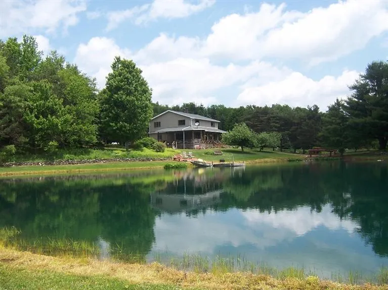 Unbelievable contemporary home tucked away off a town maintained road with seclusion and privacy on almost 30 acres of premium property. Set up for horse farm, there is a 40 x 60 barn with 4 stalls, water and electric and room for tractors. 2 additional sheds and fenced in for grazing. Home has 3 bedrooms and open floor plan for living and dining room with lava stone fireplace. Large gourmet kitchen with island and double wall oven, family room with pellet stove. Amazing wrap porch to sit by the 1 acre stocked pond which is 12 feet deep and the second 1/2 acre pond with waterfall, make this the perfect retreat. Two large vegetable gardens and fenced in blueberry bushes, fruit trees and trails thru the property. 2 treehouses for hunting. This is a one of a kind home.