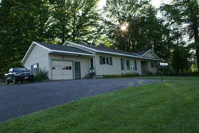 Spacious 3 BR, 1.5 Bath, ranch style home with brick fireplace. Large multi-purpose room. Large Dining Room with alot of natural light. Big country Kitchen. Fireplace in the Living Room, hardwood floors, garage, expansive dry basement with high ceilings can be converted to additional living space! Nice lot on edge of town, easy maintenance.