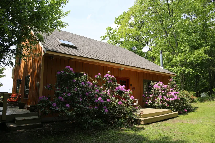Located just over a mile from the entrance to Belleayre Ski Center in Highmount this home has spectacular views of the upper Delaware valley and northern Catskill Mountains. The positioning of this four/five bedroom home features a breathtaking panorama of the broad valley below and beyond to the high peaks of the northern mountains and Plattekill Ski Area is visible across the distant view. Cathedral ceiling above the entrance foyer and living room area is highlighted by a full height stone fireplace in the corner of the living room. One of the three bedrooms on upper floor has a private bathroom with jacuzzi tub. The first floor has a study/family room now set up as a fifth bedroom. Lower level is a separate one bedroom apartment open to the panorama view of the Delaware valley and northern Catskills. This lower level apartment has a separate entrance and two of the house's three bedro...