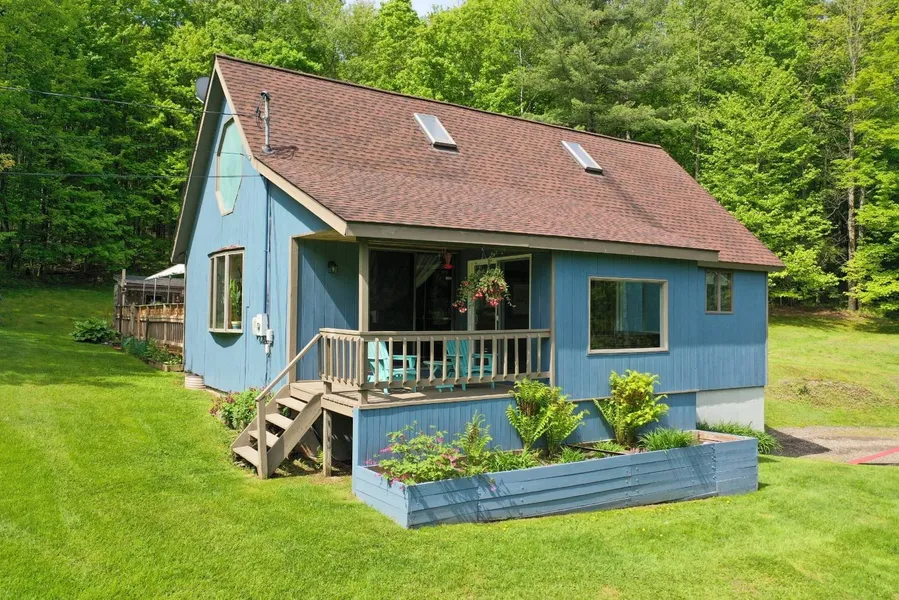 Private, secluded, serene contemporary home on 8-acre lot among rolling hills quickly brings you back to nature. Open floor plan with living and dining rooms with kitchen under a sweeping knotty pine cathedral ceiling. Primary bedroom above in large, skylighted 250+ SF loft space, two carpeted bedrooms on first floor with renovated, radiant floor-heated full bath. Relax while watching deer and wildlife on the sweeping front lawn on your covered front porch or three-person window-enclosed hot tub room. Summer barbecues are even sweeter after cooling off after taking a dip in the pristine 32'x16' in-ground pool and deck surround with pool house as a frog looks over a nearby water feature. Walkout basement with second bath, stacked laundry, workshop and two finished rooms for office, exercise or guest room spaces. Back-up generator. Detached two-car garage and raised-bed gardens are a few s...