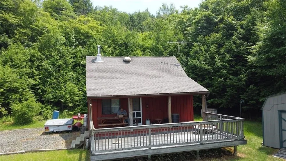 This very well built cabin is on 14 acres on top of a mountain with the nearest neighbor about 1/2 mile away. Good 4 wheel drive required, but once you get there it is truly sublime. Complete silence and 50 mile views. Cabin has solar power, generator, low voltage system for lights. Well designed and self sufficient. Low taxes. Make sure to take a look at the aerial pictures to truly appreciate the privacy.
