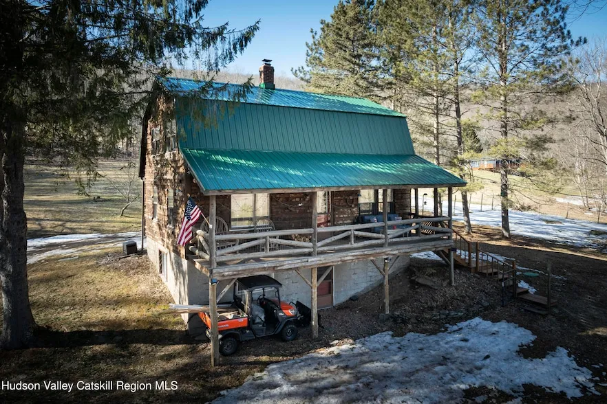 Nestled atop a scenic hill with breathtaking mountain and forest views in every direction, this charming country cabin embodies the perfect upstate retreat. Located in the picturesque town of Margaretville, you'll enjoy easy access to local restaurants, shops, and skiing at Belleayre Mountain while still having your own private escape to unwind by the fire. As you arrive, the grand driveway welcomes you, lined with towering evergreens that set the stage for a truly magical setting. Step inside, and you'll be captivated by the warmth of the wood ceilings and exposed beams, creating a cozy yet open feel throughout the main level. To the right, the beautifully renovated eat-in kitchen is a dream, featuring a stylish breakfast bar, ample cabinetry, a spacious pantry, and a bright dining area. The inviting living room is the ultimate gathering space, with abundant natural light, a cozy wood-b...