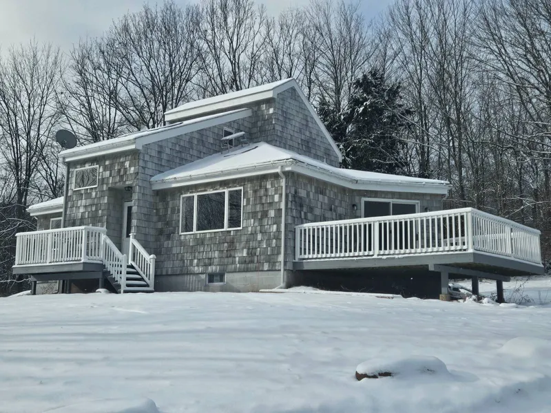 COUNTRY CONTEMPORARY ON 4 PRIVATE OPEN & WOODED ACRES WITH BREATHTAKING PANORAMIC MOUNTAIN VIEWS - You must see this unique 3 bedroom, 2 full bath 1,710 square foot freshly stained, painted & updated home hidden away in rural Roxbury off a quiet dead-end road just minutes to the historic & trendy hamlet of Roxbury. From the moment you arrive you'll be captivated by the privacy, quiet & magnificent view. Inside you'll be taken by the bright, open & airy floor plan, and from the soaring vaulted ceilings to the large windows that take advantage of the sunny exposure and views. The kitchen boasts stainless appliances, including a double-door refrigerator with bottom freezer, a new professional smooth-top range/oven, new vented microwave and new dishwasher. The windowed dining area has sliders that open to the entertainment-size deck, perfect for those barbecues or to just unwind, relax and e...