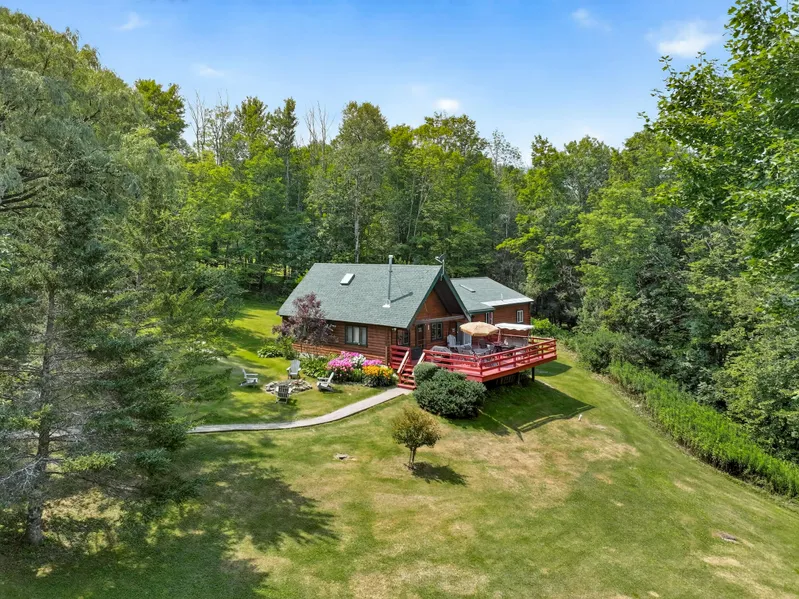 Drive along beautiful country roads lined with stone walls and wildflowers, leading you to your picture-perfect log cabin in the Catskills — where rustic charm meets modern amenities. Tucked away for total privacy and surrounded by beautifully landscaped grounds and mature plantings, this is your retreat. Seven acres of complete privacy, with a private back meadow, rolling front lawn and seasonal stream. A paved walkway leads you to an expansive deck—your future hub for entertaining family and friends with barbecues, cocktails, and soaking in the big open sky. Slide open the glass doors to a beautifully renovated kitchen with granite counters, a sleek tile backsplash, a spacious island with seating for six, stainless appliances, and modern cabinetry. The easy-flow layout offers four bedrooms (all with queen beds), two full baths, two cozy living rooms with gas fireplaces, a dining room w...