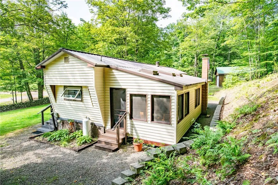 This hybrid home sits on 9+ private acres in the town of Franklin. Meticulously maintained by the same owner for over four decades, this home is truly move-in ready. The open-concept living and dining room are the highlight of the interior. Both are connected to the spacious kitchen, as well as the screened in porch. The house features central air conditioning and heating. The washer and dryer are conveniently located between the bathroom and the three bedrooms. Outside, there is a sturdy two-car garage with a concrete floor and electric. Further back into the lush woods is an additional storage trailer and plenty of room to hunt or hike. The floor system has been insulated with spray foam. The hot water heater is brand new. Best of all, the furniture, tools, and lawn equipment come included with the house! Equipped with high-speed internet, this secluded ranch would make a great part-time or full-time home. Do not miss this exceptional value, make your appointment today!