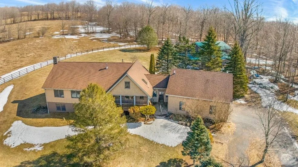 Welcome to this Delaware County Property, 314 96 Road, Kortright, New York-a stunning 15.34-acre retreat in the heart of Delaware County. This charming single-family home features 3 bedrooms, 2 full bathrooms, and 1 half bathroom, offering the perfect blend of space, comfort, and natural beauty. Abundant natural light fills the home, highlighting elegant interior details like a stunning stone fireplace, radiant heat, a formal dining area, and an inviting eat-in kitchen. The warmth of a wood stove and the convenience of walk-in closets add to the home's charm and functionality. For outdoor enthusiasts and equestrians, this property is truly exceptional. A 3/4-acre stocked pond, a fenced paddock for horses, and a 4-stall horse barn with a heated tack room and hay loft provide everything needed for country living at its finest. Additional highlights include two storage sheds and a walk-up loft space over the garage, perfect for extra storage or a potential studio. With ample pastureland, you'll enjoy breathtaking views and endless opportunities for outdoor activities. Delaware County offers the perfect balance of tranquility and adventure. Explore scenic hiking trails, charming local shops, and cozy eateries, all while being surrounded by the area's stunning natural beauty. Plus, the location provides easy access to major urban centers-Albany is just a short drive away, and the George Washington Bridge in New York City is just under three hours. Don't miss this incredible opportunity to own a slice of paradise in Kortright, New York. Whether you're looking for a peaceful retreat, an equestrian haven, or a home that seamlessly blends comfort and country charm, 314 96 Road is ready to welcome you home.