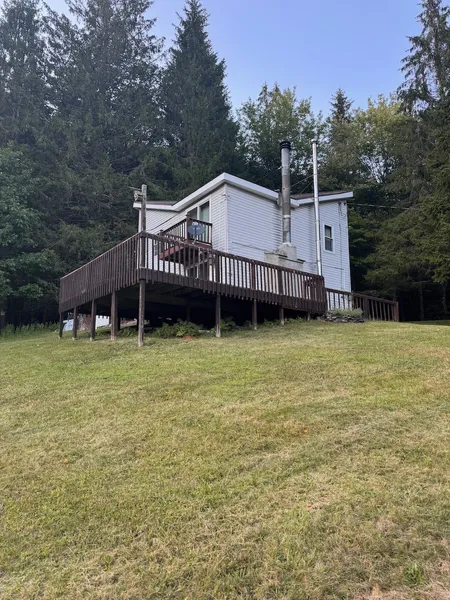 Fantastic opportunity to own your own piece of Delaware County! This contemporary home on 18 private acres makes the perfect weekend retreat or getaway. Built in 1985, it features an open main level floor plan with a spacious living area, dining area and kitchen. A custom stone fireplace is the centerpiece of the living area and wooded beams give the home character. The first floor also features a pantry closet and 1/2 bathroom with additional storage. Patio doors off the living area lead to a large deck for outdoor entertaining. The second story features 3 bedrooms and a full bath. Upstairs you will also find a private balcony where you can unwind and enjoy the country views. The 18 acres of land is gently rolling and has trails for you to walk and traverse. There is also plenty of stream frontage and a second seasonal stream. Outbuildings include a 2 bay pole barn with workshop, storag...