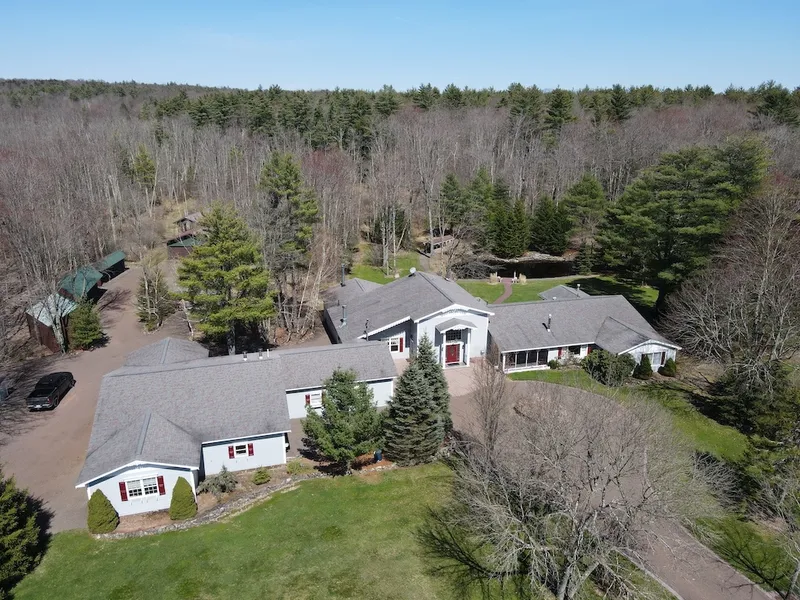 Welcome to this extraordinary private estate nestled on a beautiful 15-acre wooded setting. This property exudes tranquility and the joys of nature from the moment you approach the long private drive marked by stone pillars, setting the tone for your retreat country home. This home boasts 4088 sq ft of living space and offers so much to its new owners. The original portion of the ranch, built in 1980, was expanded massively with the 2010 addition, with high-end materials and refined details evidenced throughout. Multiple open spaces offer perfect areas for entertaining with a gorgeous living room and its wood-burning fireplace and large gaming area including a full-sized pool table, a massive rec room with its own fireplace suitable for hosting large groups of people, and a huge wet bar, with its ornately carved woodwork, copper counter/sink and wine cooler. There are two primary bedroom suites, each with its own fireplace, room for sofa sitting areas, walk-in closets and private baths, along with another two bedrooms that share a bath. In total, there are five fireplaces/woodstoves and two covered patios - a small one to enjoy views of the front yard and a larger one off the back with pond views, which features an impressive outdoor stainless steel outdoor kitchen with a massive grill, sink, refrigerator and storage drawers, along with an outdoor dining set included with the sale. A Bose sound system is wired throughout the house as well as the back-enclosed patio, while the outside patio features a firepit with a powered rotisserie for even more amazing outdoor entertaining. Equally as impressive as this home is, consider its dream-come-true garage and workshop. Offering 2200 sq ft of workspace, this garage can house up to 7 vehicles and features a woodworking area with a built-in bench, radial arm saw & chop saw included, an air filtration system, a welding work area with an 18' steel workbench with built-in downdraft system, and welder outlets provided throughout the garage. A main air compressor is also included, with a 1/2" black iron piping system around the whole workshop with multiple takeoffs with hoses for air tools, a paint booth with curtain, as well as an insulated (spray foam) storage room for paints and related products. The garage has multiple economical heating options, including a forced air wood furnace, propane forced air, and a wood boiler that can heat both the garage and the house. The house is heated by propane or by wood. The property also includes a 40x60' pole barn, RV storage pavilion, and multiple storage sheds, easily accessible by gravel driveways. Stroll along the various trails and bridges over the stream that meanders through the property and through to the woods, which have never been logged and feature a mix of hardwoods, including many large oaks and softwoods. Minutes from highways, schools, shopping, universities, hospitals and downtown Oneonta and less than 3 hours from NYC/George Washington Bridge. Discover the many features and unique touches that make this home truly exceptional! *Also available: 3 bed, 2 bath, 1456 sf Ranch built in 2002 on 10 acres with 2 car attached garage and an additional 10.52 acres of undeveloped land.