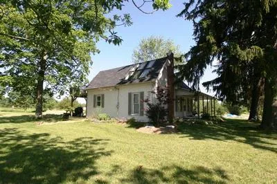 Unique farm home with many neat features... This three bedroom, two bath home offers master bedroom with den off of it., living room with very unique vaulted ceiling, dining room with all glass wall allowing lots of natural light through the kitchen, raised 12' x 12' deck, and great view to sky lights and vaulted lower level. Delco at the road.