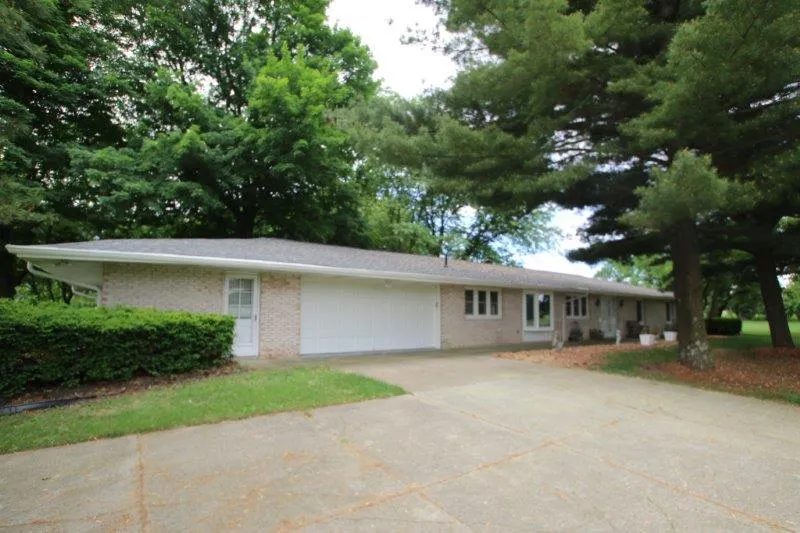 Well cared for huge all brick ranch on a 3 foot crawl space. Many mature trees accented with some nice landscaping. Could be 4 bedroom with 2 1/2 half bath main home and beyond the huge 24 x 30 over sized garage is a 12 x 30 Mother-in-Law Suite consisting of a great room/ bedroom with a full kitchen and full bath ( 2 separate entrances). Natural gas high efficient furnace. Living room / Great room has raised brick hearth wood burning stove. Large utility room (7'7 x 12') with an adjoining half bath. Many updates: windows in 2013, roof and gutters in November 2017. Detached farm building with roof watering system to the rear overlooking a large garden area. Rear concrete patio is fully shaded (16' x 27'). RWS Home Warranty is in place. Very roomy inside and out for entertainment.