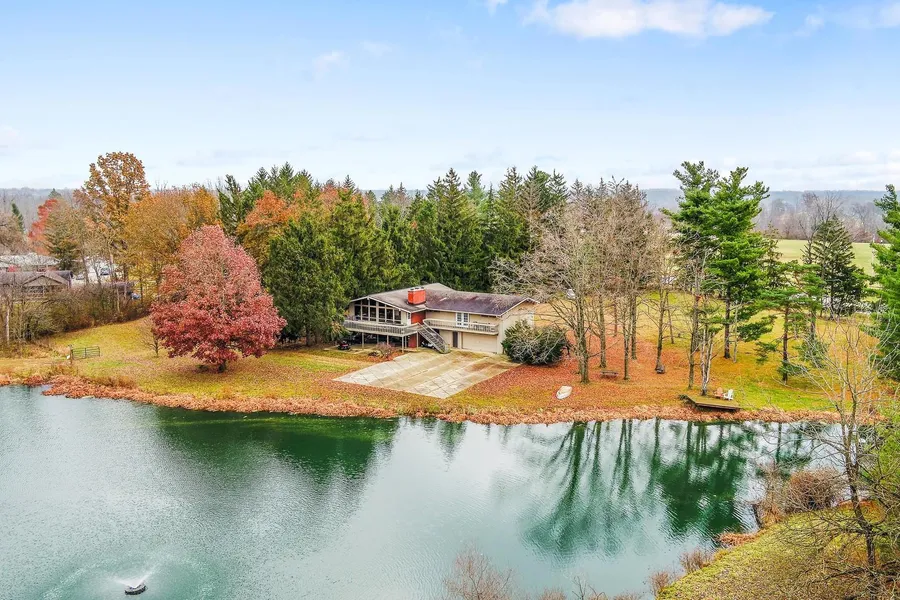 MULTIPLE OFFERS RECEIVED! IF YOU HAVE ANY INTEREST IN THIS PROPERTY, BE SURE TO YOU HAVE YOUR OFFER IN BY TUESDAY NIGHT @ 8pm (2/18/20)! One of the most beautiful pieces of property in Delaware County located right across the street from Concord Park. Custom built home with walk out lower level has amazing views of the 1 acre stocked pond with floor to ceiling windows. Hardwood floors, granite counter tops, custom fireplace, beautiful wooded lot. Home needs some repairs & TLC, owner is a real estate broker. Property includes additional parcel that includes 500 sq ft building that was used for dog boarding. All 10 acres are fenced in and was used as one of the nicest dog parks in the state. HUGE OPPORTUNITY FOR DOG BUSINESS OR FOR DEVELOPMENT