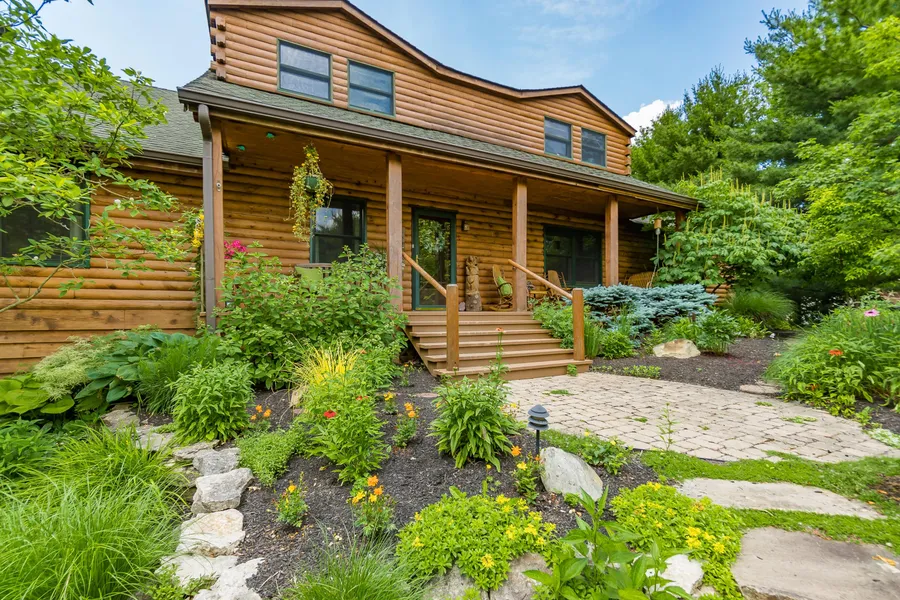 Rustic, yet elegant, this custom log home is spectacular in every way! With fine woods, luxe materials & custom touches, this home reflects the art of living well! Vaulted GR w/ soaring ceilings is highlighted by floor-to-ceiling stone wood-burning fireplace! Kitchen is chef's dream w/custom hickory cabinets, $7500 AGA 6-burner stove w/ 4 ovens, 2 dishwashers! Kitchen boasts stone breakfast bar,opens to huge eat-in area! FR overlooks 2.4 wooded acres & multiple decks/balconies, screened porch provide seamless melding of indoor-outdoor space w/ lovely views! All 4 BR have customized attached bathrooms-perfect for your guests! Owner's suite offers floor-to-ceiling stone gas-burning FP & cozy reading nook! Den could function as 5th BR! In a class by itself-a peaceful retreat from the world!