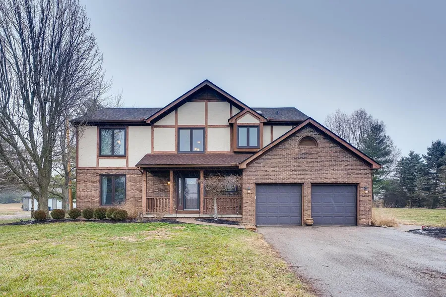 4 bedroom, 2.5 baths sits on an acre in Buckeye Valley schools. New flooring and easy slide blinds throughout. There's great flow in this house. Spacious formal living room. Dining could easily be converted to an office. Updated kitchen including Whirlpool stainless steel appliances, quartz counter tops, and farmhouse sink. Eat-in space includes large bay window with bench. Access the backyard through the family room. Wood burning fireplace. Finished basement. Owner's suite has vaulted ceilings, walk-in closet and a skylight. En suite with large jetted tub and separate shower, skylight and vaulted ceilings. 3 additional bedrooms and updated guest bath. Large outbuilding with new electric/HVAC. Paver patio, built-in fire ring and fenced-in basketball area.