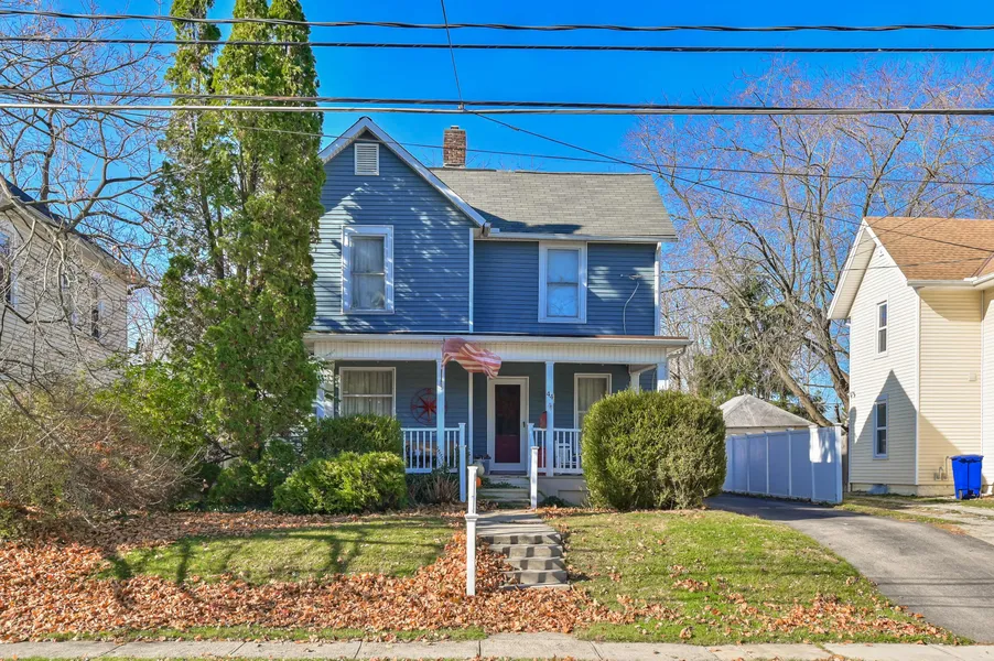 This is a unique Delaware home complete with hardwood floors. As you walk in the front door to the dining room there is a feeling of comfort. You are able to go straight upstairs or left to the living area. Through either the dining or living area is the beautiful kitchen. The kitchen leads to a family area with a combination of a large full bathroom and laundry room. You can sit and enjoy the weather on the screened porch or go outside in the fenced in yard with playset. There is a 2 car detached garage. There are 3 bedrooms, 1 of which has a walk in closet, plus another full bathroom upstairs. The mudroom is conveniently located at the side door with access to the partial basement and kitchen. Within walking distance of Blue Lime Stone Park and downtown Delaware. Updated 5 yrs ago.