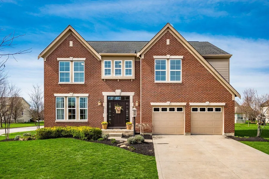 Exceptional, open-concept floor plan features large rooms, high, smooth ceilings and thoughtful design. Hardwood flooring in the foyer continues into the formal living room, dining room and kitchen. This home features beautiful millwork throughout, including crown molding, wainscoting and beamed ceiling in the great room. The kitchen boasts an expansive work island with breakfast bar, solid surface countertops, 42'' multilevel cabinetry, Stainless appliances, pantry and a spacious, sunny eating area. Private owners' suite with elegant bath. Convenient 2nd floor laundry room. Finished lower level has a full bath, media room, spacious home office and rec. room. The big back yard is perfect for outdoor activities. Close to shopping, restaurants and recreation. Easy access to I-71
