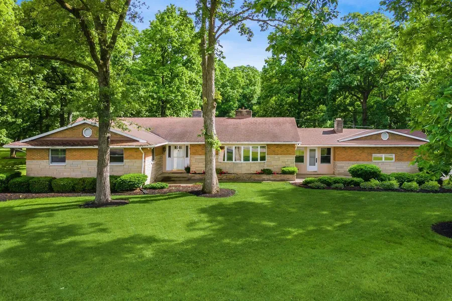 Enjoy country living just minutes from downtown Delaware! This hard-to-find, sprawling 3,250 square foot ranch sits on 4.25 acres with a pond on a magnificent wooded lot. It is a unique home built by the owner in 1959, with 4 BR, 3.5 baths, and 5 fireplaces. The kitchen opens to the expansive family room that leads to the screened-in porch and deck overlooking the pond. The beautiful lawn is perfect for entertaining and summertime fun! There is even more space in the extra-large (1,320 sf.) detached garage that is ideal for an art studio, workshop, or whatever your heart desires. Your personal touches can make this your HGTV dream home! This extraordinary property offers endless possibilities! (1.92 acre wooded parcel available at $129,000. Buyer 1st right refusal totals over 6 acres.