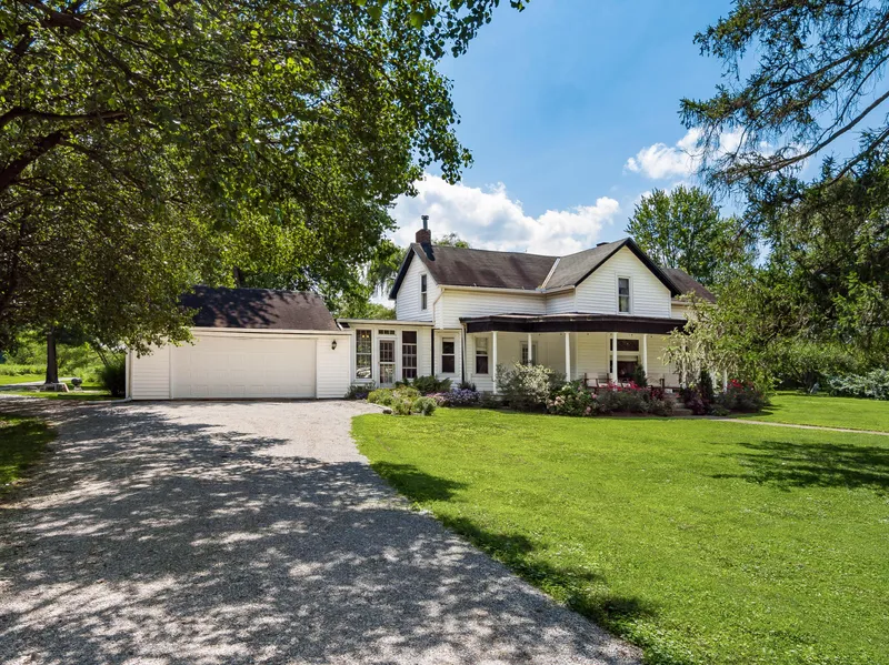 This historic 4 bed 2 bath home on 4 acres has been beautifully renovated & offers an amazing blend of old charm with modern updates. The chef's kitchen designed for canning & baking, offers stainless steel appliances, butcher block counters with a large marble counter island. Large dining room with gas fireplace. Family room with wood burning fireplace. Beautiful woodwork throughout. Generous size bedrooms. Master w/ walk in closet & updated bath with claw foot tub & separate shower. Convenient main floor laundry. Roomy breeze way is the perfect 3 season room. Curved covered front porch enhanced by lovely landscaping. Large outbuilding w/ electric, variety of mature fruit trees, & expansive garden area, are perfect for a hobby farmer. Country living close to all the amenities of the city.
