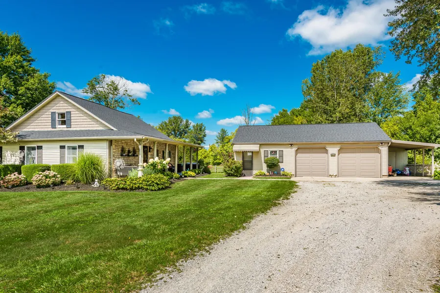 Don't miss this opportunity to own a beautifully maintained home on a gorgeous lot that has just over four acres. Sitting far off the road on a private driveway, this one has everything you could ever want! On the main level you will find a very spacious living room, updated kitchen with an eat in area, master bedroom, one full and half bath, laundry, and what could be a fourth bedroom or office. On the second level you will find two large bedrooms. Off of the kitchen is a private concrete patio with an awesome pergola where you could sit and enjoy a morning cup of coffee. The two car detached garage also has an attached workshop and car port. New roof on whole house and garage in 2019. Great location just minutes from Delaware, Dublin, and Marysville!